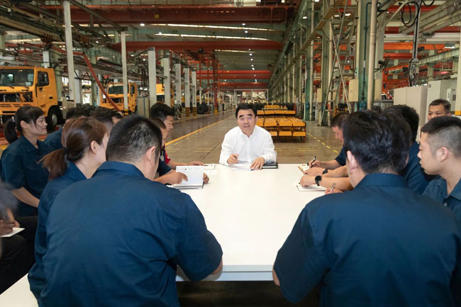 宣講后,滿慎剛到中國(guó)重汽濟(jì)南特種車(chē)公司調(diào)研,與基層黨務(wù)工作者、一線工匠技師座談交流,面對(duì)面?zhèn)鬟_(dá)黨的二十屆三中全會(huì)精神,深入了解基層黨組織建設(shè)、生產(chǎn)經(jīng)營(yíng)、人才培養(yǎng)、員工服務(wù)保障等工作。