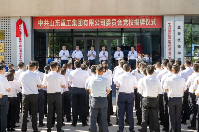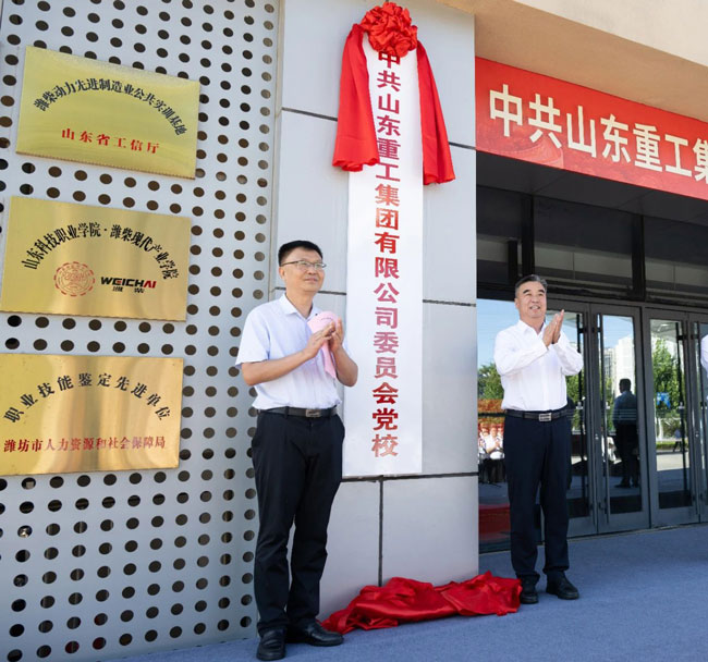 9月6日上午,山東重工集團黨校揭牌儀式在濰柴職業(yè)大學(xué)舉行。山東省委黨校(山東行政學(xué)院)副校(院)長林學(xué)啟,山東重工集團黨委副書記、黨校校長葉建軍共同為“中共山東重工集團有限公司委員會黨?!苯遗撇⒅罗o。